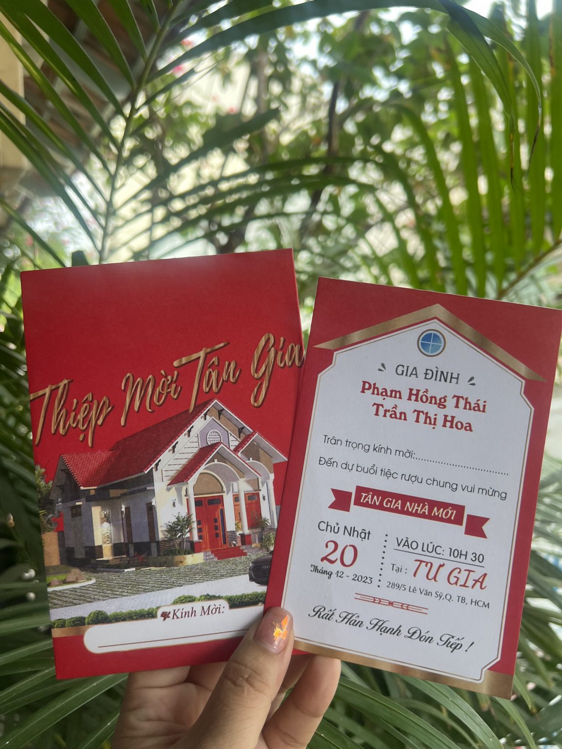 - Mẫu phôi thiệp mời tân gia đỏ offset nhà thái, màu đỏ, xanh dương, Gỗ Kích thước kiểu đứng 10.5 x16cm chất liệu: Giấy kem gân mỹ thuật Bao thư đã dán sẵn, ruột 1 tờ in offset