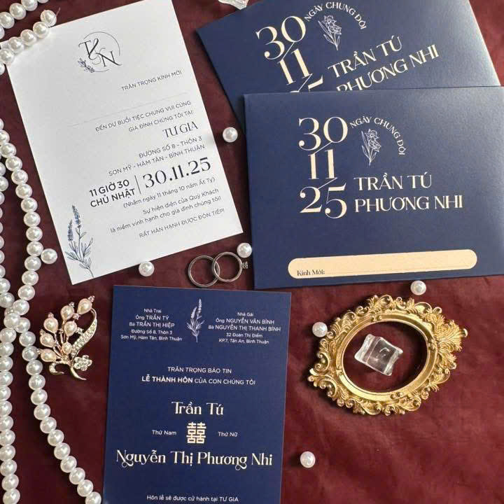 • THIỆP CƯỚI "SẮC XANH ĐỊNH MỆNH" – VẺ ĐẸP THANH LỊCH VÀ TINH TẾ Mẫu thiệp cưới "Sắc Xanh Định Mệnh" mang đến sự kết hợp hoàn hảo giữa tông màu xanh navy trầm ấm và trắng tinh khôi, tạo nên một phong cách sang trọng, vượt thời gian cho ngày trọng đại của bạn. Đây là lựa chọn lý tưởng cho những cặp đôi yêu thích vẻ đẹp cổ điển pha chút hiện đại, thể hiện cá tính riêng biệt và đẳng cấp.