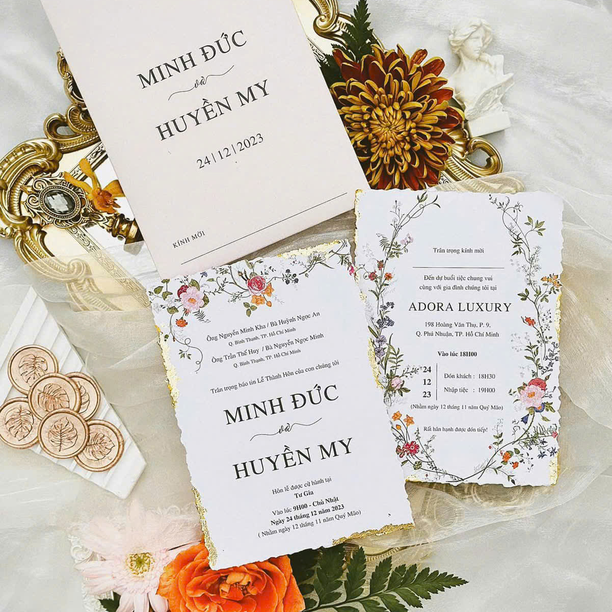 Thiệp được in trên giấy Ivory định lượng cao, đảm bảo độ mịn, độ bền và khả năng tái tạo màu sắc chính xác, giữ gìn vẻ đẹp của từng chi tiết. Để tăng thêm phần đặc biệt, quý khách có thể lựa chọn giấy mỹ thuật ánh kim cao cấp, mang lại vẻ ngoài lấp lánh và hương thơm dịu nhẹ, tạo ấn tượng khó quên cho người nhận.