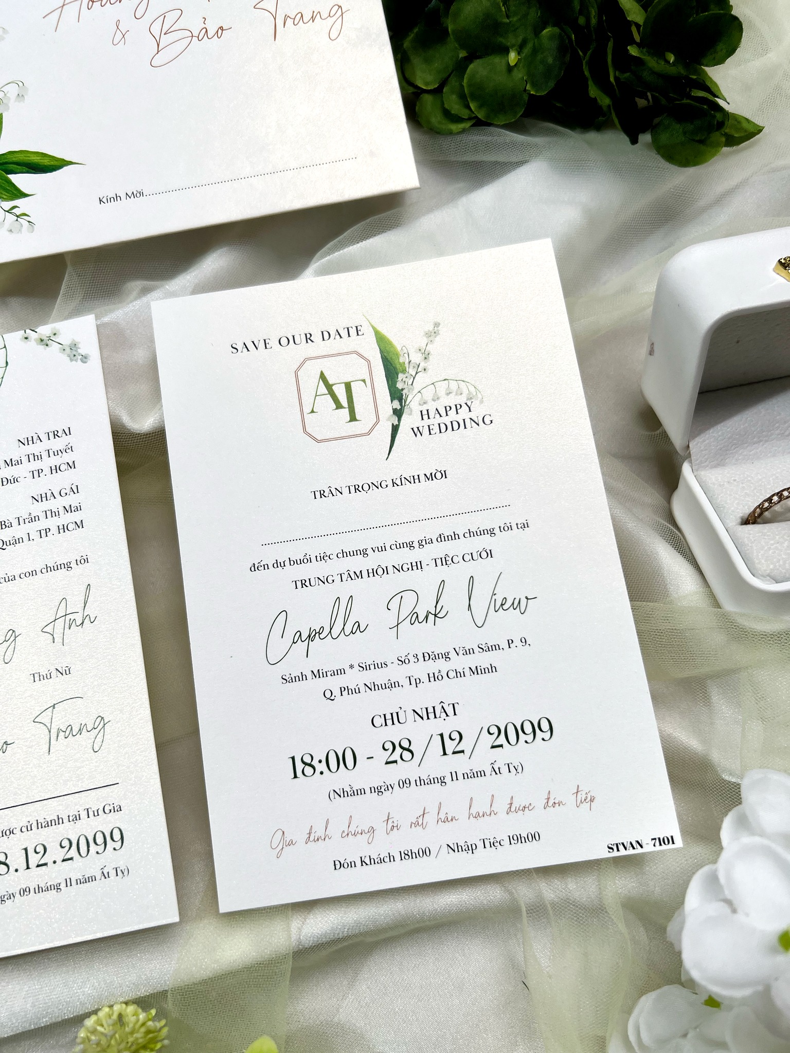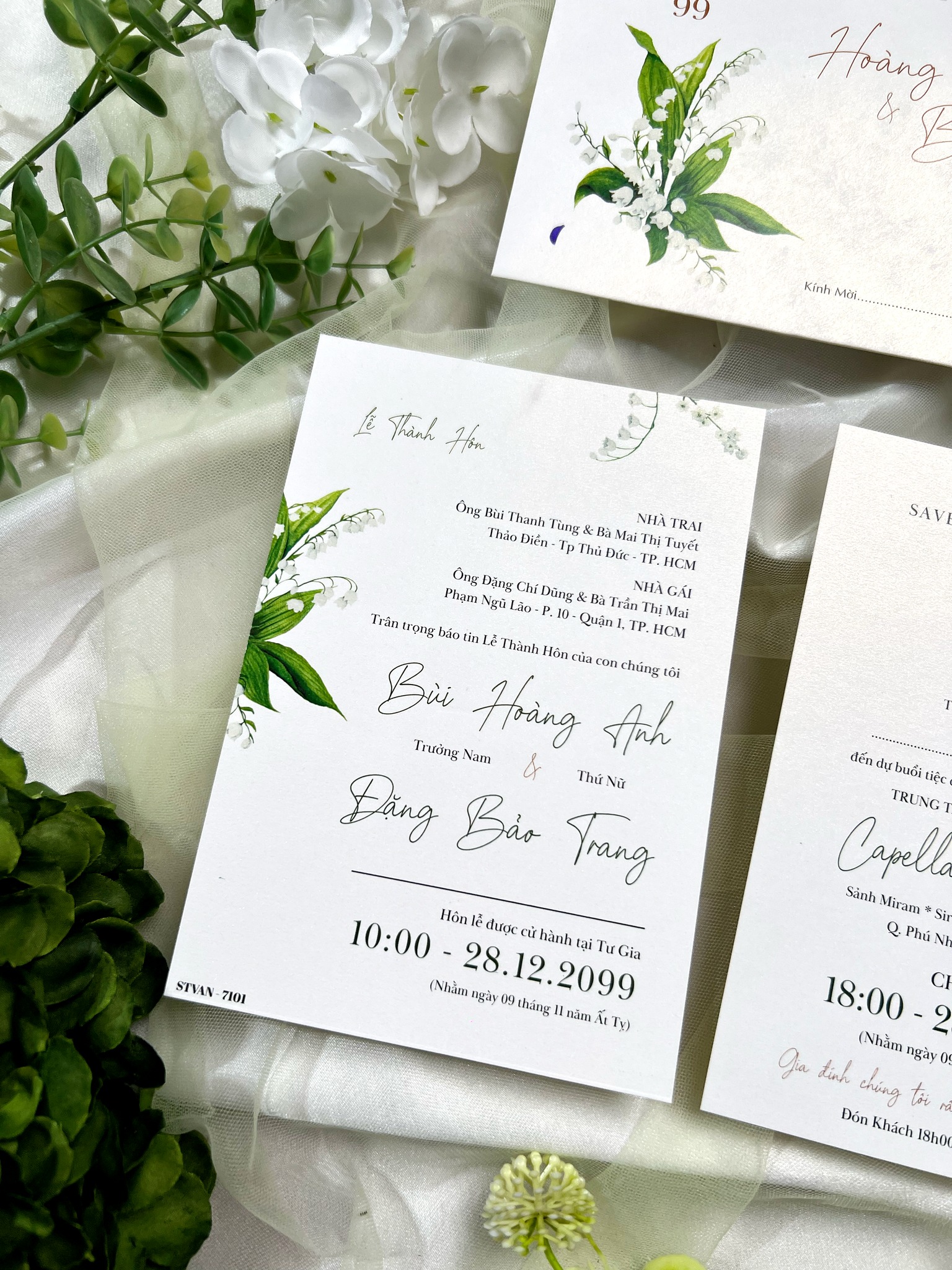 Thiệp cưới Hoa Linh Lan là sự kết hợp hoàn hảo giữa nét hiện đại và tinh tế. Lấy cảm hứng từ loài hoa linh lan trắng – biểu tượng của hạnh phúc vĩnh cửu, mẫu thiệp mang đến cảm giác trong trẻo, thanh khiết và tràn đầy yêu thương.