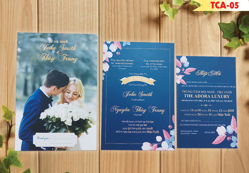 Mức giá in thiệp cưới KTS hoàn thiện phụ thuộc vào kiểu in, giấy in, gia công thêm ép kim, đóng mắc cáo, thêm các chi tiết nếu có.