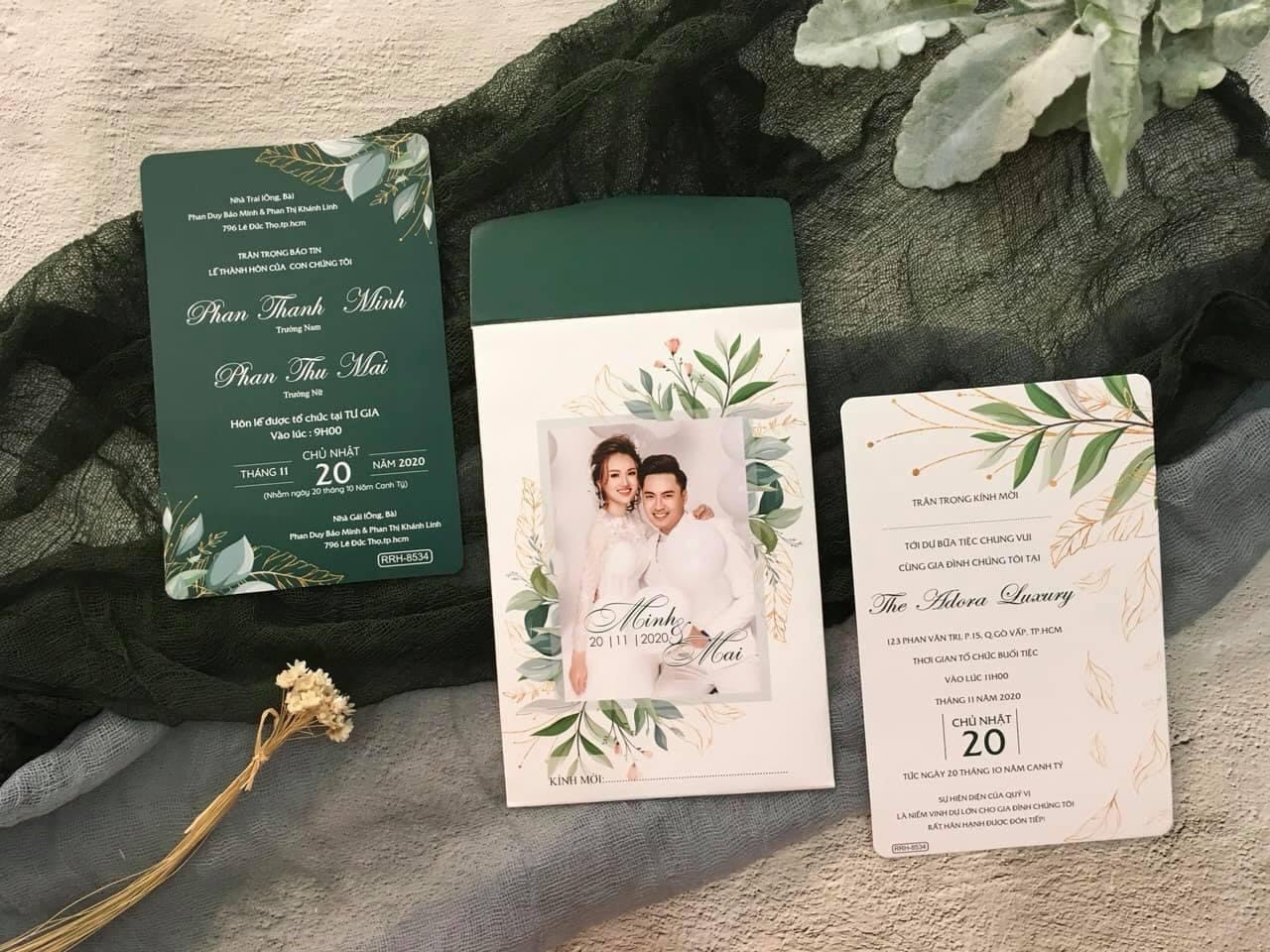 Mức giá in thiệp cưới KTS hoàn thiện phụ thuộc vào kiểu in, giấy in, gia công thêm ép kim, đóng mắc cáo, thêm các chi tiết nếu có.