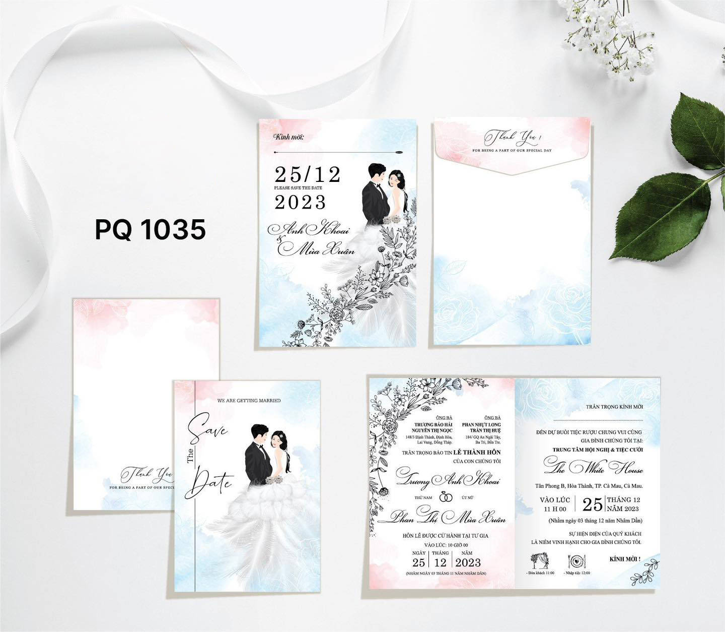 Thiệp Cưới Đồng Xoài ( Xưởng In Khánh Huyền) thiết kế và in theo từng đơn hàng Dâu Rể đặt, Thiệp in hoàn thiện gồm bao thư + ruột + phụ kiện nếu có đã in, dán thành phẩm.