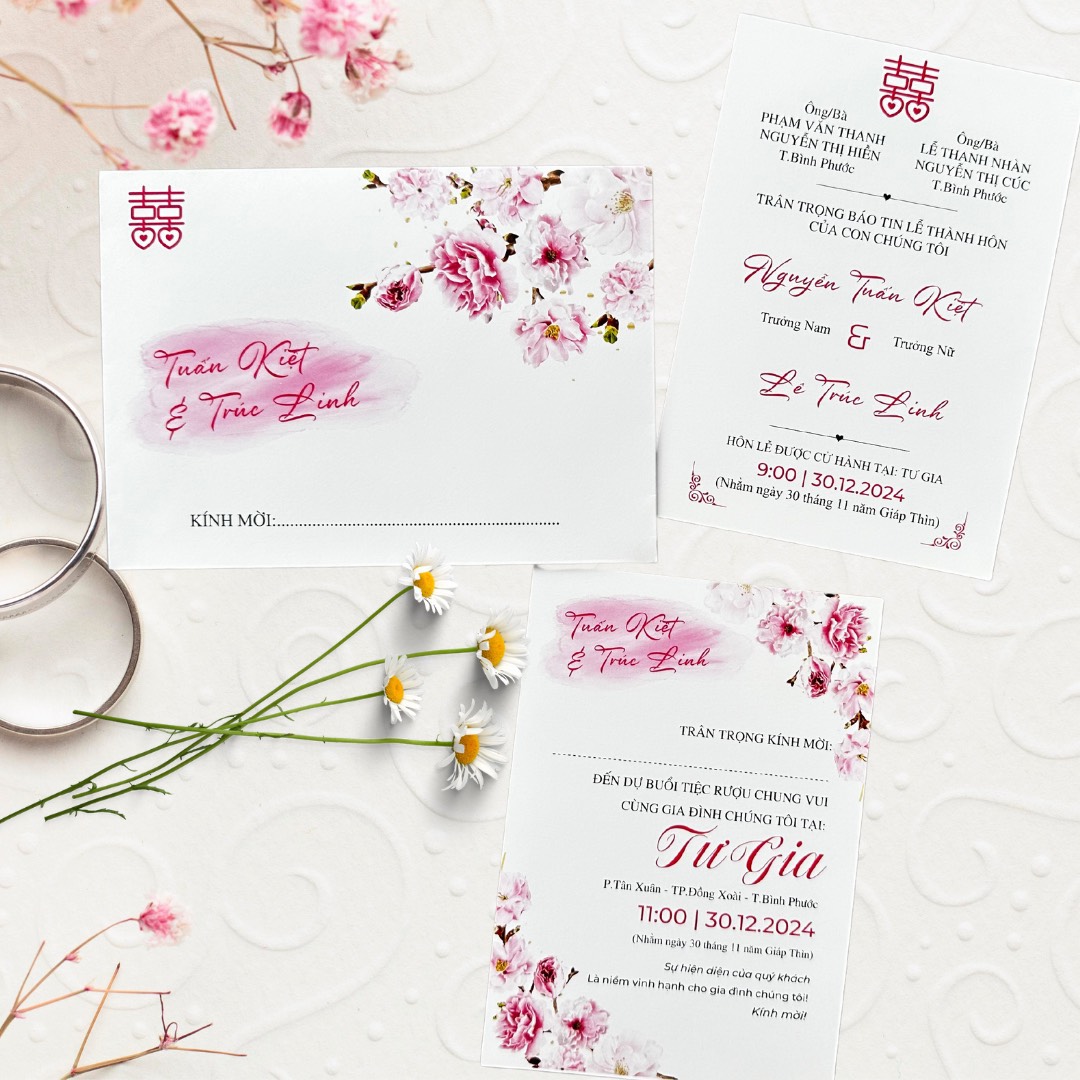 Thiệp Cưới Đồng Xoài ( Xưởng In Khánh Huyền) thiết kế và in theo từng đơn hàng Dâu Rể đặt,
